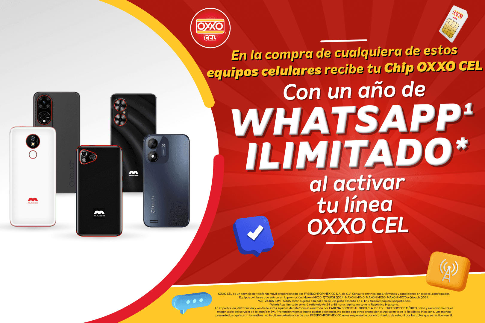 (Para activar tu SIM deberás realizar una recarga mínima de $50 y completar el proceso de vinculación). Para más información visita oxxocel.com/activacion