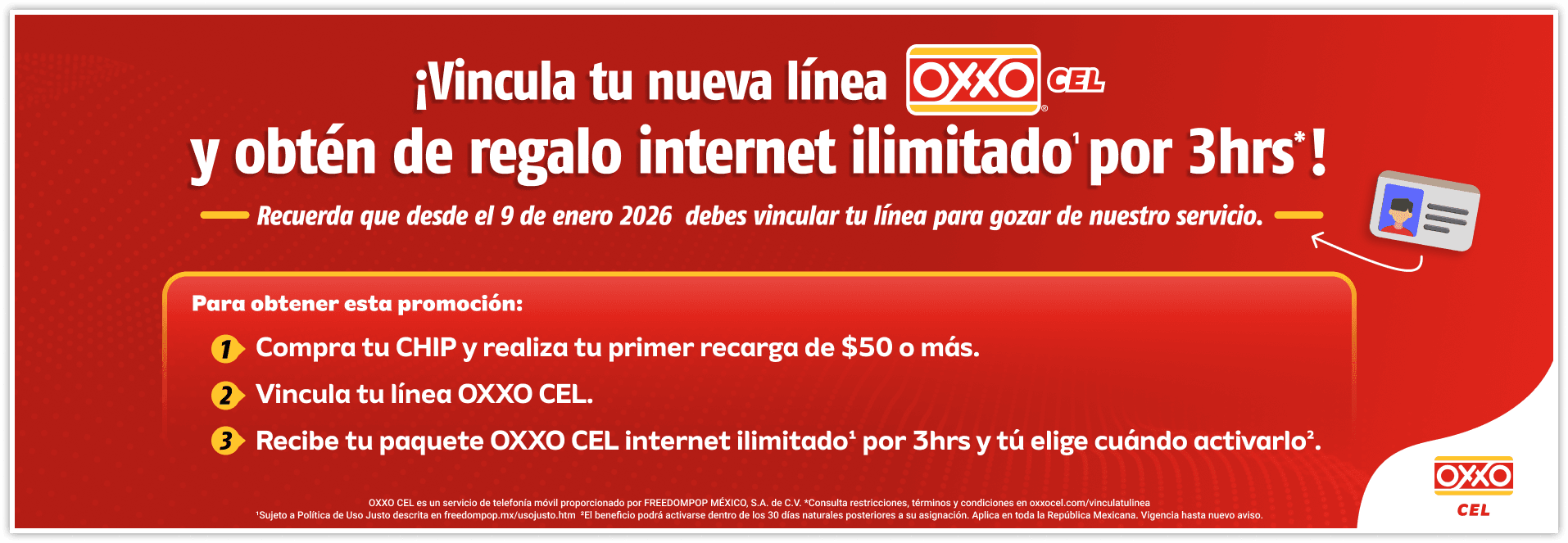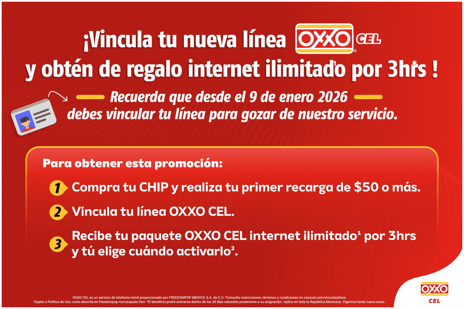 En cumplimiento de lo dispuesto por los Lineamientos para la Identificación de Líneas Telefónicas Móviles (en lo sucesivo “los Lineamientos”), publicados por la Comisión Reguladora de Telecomunicaciones en el Diario Oficial de la Federación el 9 de diciembre de 2025; Freedompop México, S.A. de C.V. en su carácter de concesionario y prestador del servicio de telefonía, informa de manera clara, accesible y oportuna a todas las personas Titulares y/o Usuarias sobre los requisitos y modalidades para realizar: